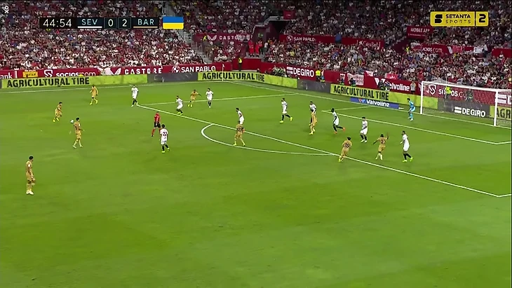 Могло показаться, что это может стать началом возвращения хозяев в игру, однако «Барса» быстро довела счёт до разгромного и вопрос о победителе в этой встрече был окончательно снят. С одной стороны, каталонцы неплохо разыграли стандарт и подача Рафиньи была очень качественной, однако нельзя сказать, что в этом розыгрыше есть что-то уникальное: простой перегруз дальней штанги. В этом эпизоде расположение игроков «Севильи» и их реакция на эту заготовку – полный провал.