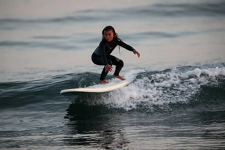 «Я встаю в четыре или пять часов утра, бужу всех, готовлю плавательный костюм и рюкзак. Потом мы смотрим волны по веб-камерам, ищем подходящий пляж и едем серфить на несколько часов. Оттуда мы направляемся в школу, а когда уроки заканчиваются, то у меня либо занятия по игре на гитаре, либо тренировка по джиу-джитсу. Потом мы возвращаемся на пляж, если волны все еще хорошие, а если нет – то идем в скейт-парк».
