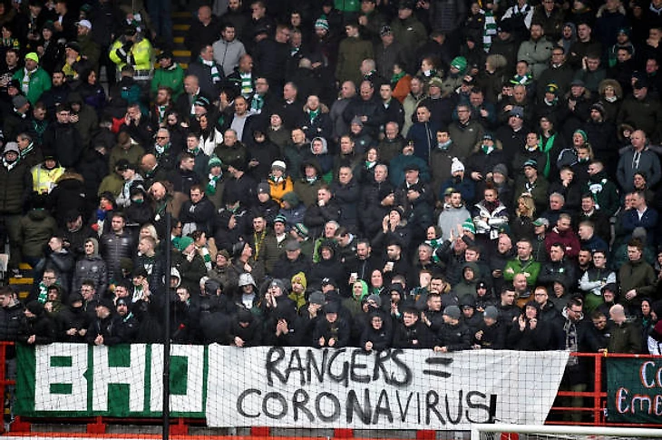 Также поступали и некоторые другие посетители английских стадионов на минувших выходных – правда, в основном это были как раз-таки азиаты. Но некоторые фанаты усмотрели в коронавирусе неплохую причину для глума над своими врагами. Так фанаты шотландского "Селтика" во время гостевой игры против "Гамильтона" высмеяли своих врагов из "Рейнджерс", сравнив их с распространением вредоносной бактерии.