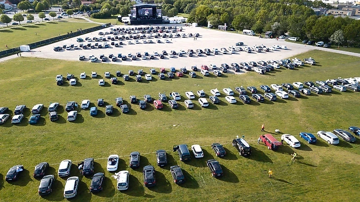 Те болельщики, которые не пожелали смотреть матч с помощью "Zoom", воспользовались услугами автокинотеатра под открытым небом.