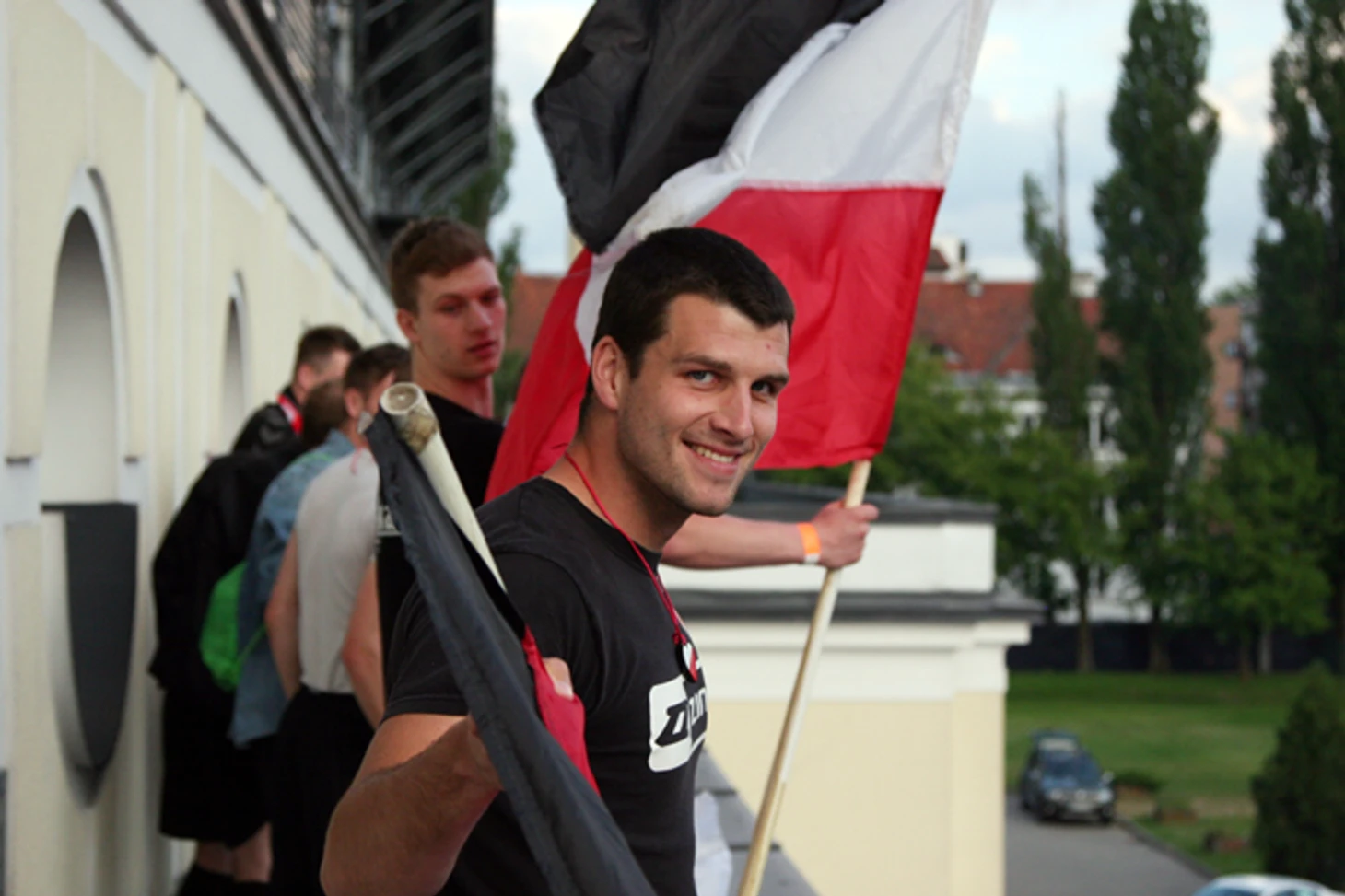 Небольшая справка: С 90-х годов в рядах "Полонии" небольшая часть фанатов придерживалась левых взглядов, пока лет 7 назад правые парни их всё-таки не прогнали с трибуны прямо во время дерби – тогда заварушка началась с того, что антифа пытались снять флаг с перечеркнутым серпом и молотом с вышки капо.