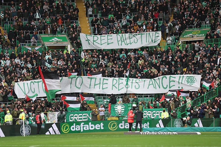 Вполне ожидаемо наиболее громкую поддержку Палестине высказали известные своими левыми взглядами фанаты шотландского «Селтика», которые и ранее, в более мирное время, неоднократно вывешивали флаги этой страны на своей трибуне. На этот раз они вывесили баннер «Свободу Палестине, победу сопротивлению» на домашнем матче с «Килмарноком», прошедшем как раз в день нападения на Израиль. В дальнейшем клуб выпустил заявление, в котором осудил действия своих фанатов. Однако группировка «Green Brigade», вывесившая баннеры, призвала всех болельщиков клуба поддержать новую акцию на сегодняшнем матче Лиги Чемпионов против «Атлетико».