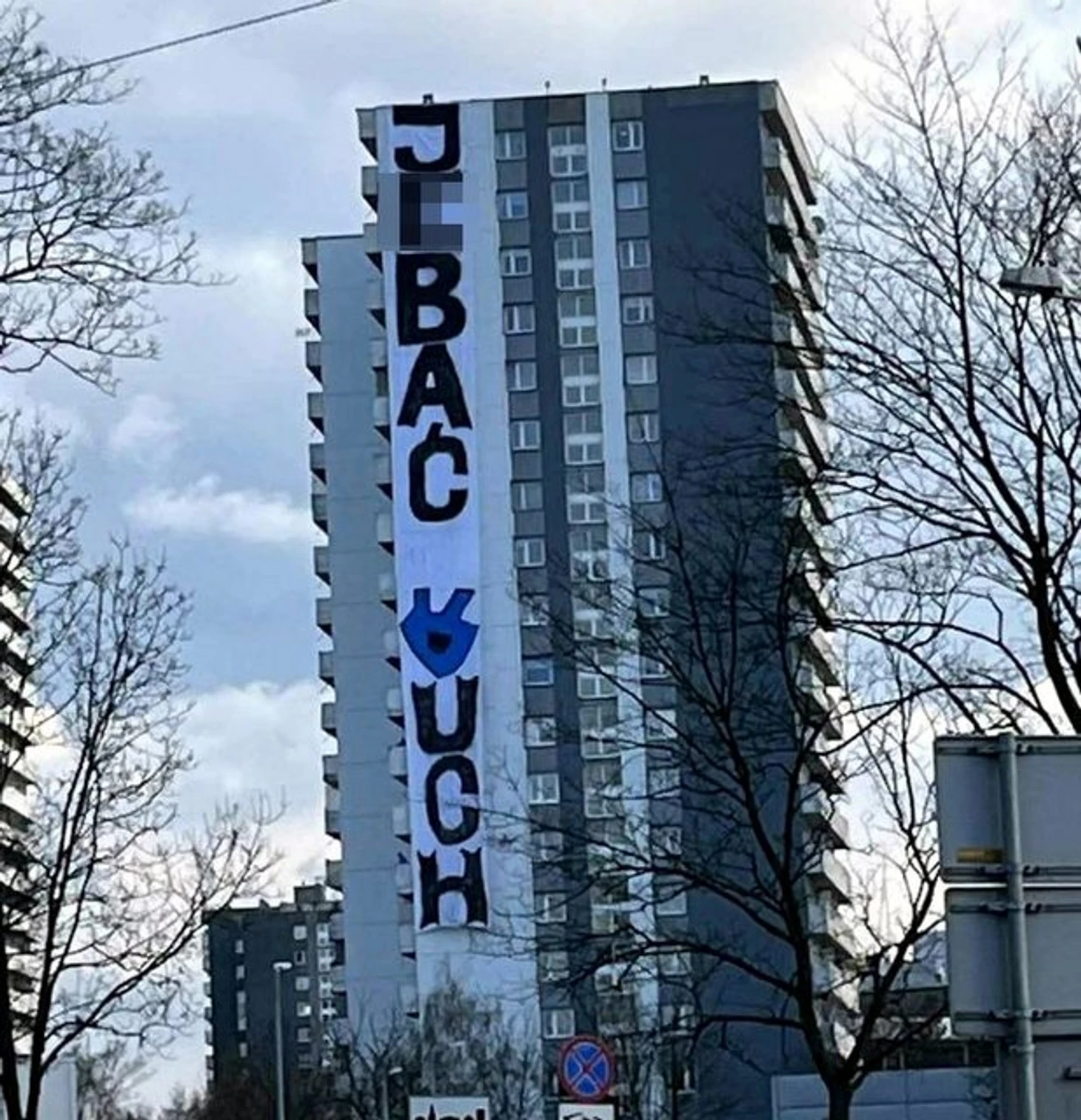 А вот ультрас «Гурника» ответили тем, что с крыши одной из высоток вблизи стадиона вывесили огромный баннер в адрес своих врагов – перевод этой понятной на всех языках мира нецензурной фразы, я думаю, тут не нужен.