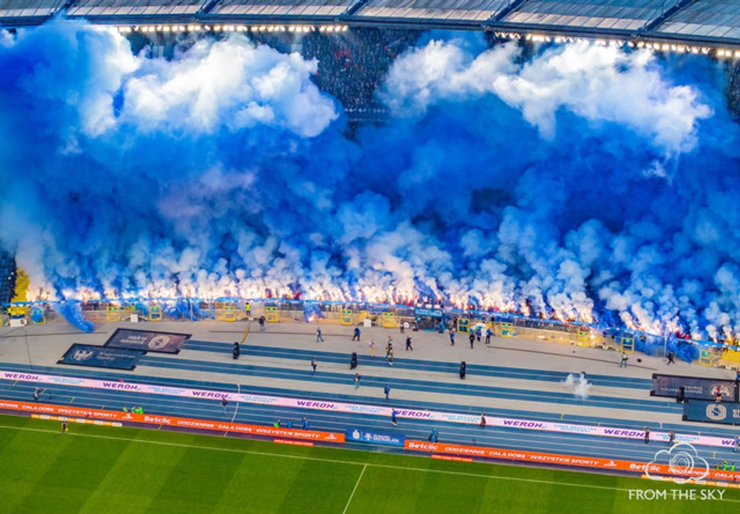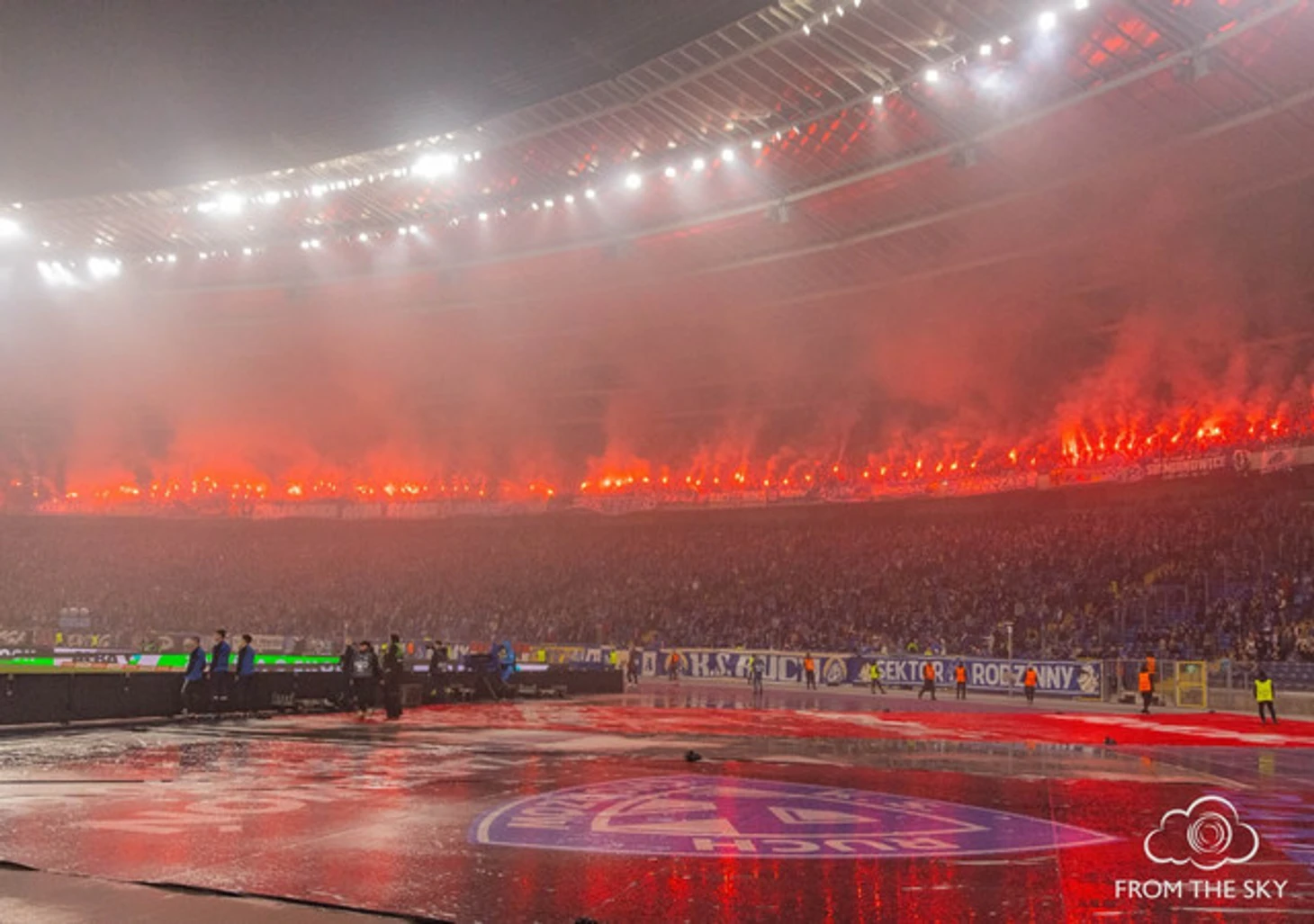 На самой игре собралось 38 тысяч зрителей – абсолютный аншлаг! Фанаты «Руха» подготовили плашечную оправу «Супер Рух», а также баннер с чемпионским кубком и цифрой 14 на нём. Столько же звёзд красовалось и над баннером – в честь количества золотых медалей чемпионата Польши в истории клуба. Напомню, что «Рух», кстати вместе с вражеским «Гурником», долгие годы был самым титулованным клубом страны с 14-ю чемпионствами в своём активе. Лишь в 2021 году их смогла обойти столичная «Легия».