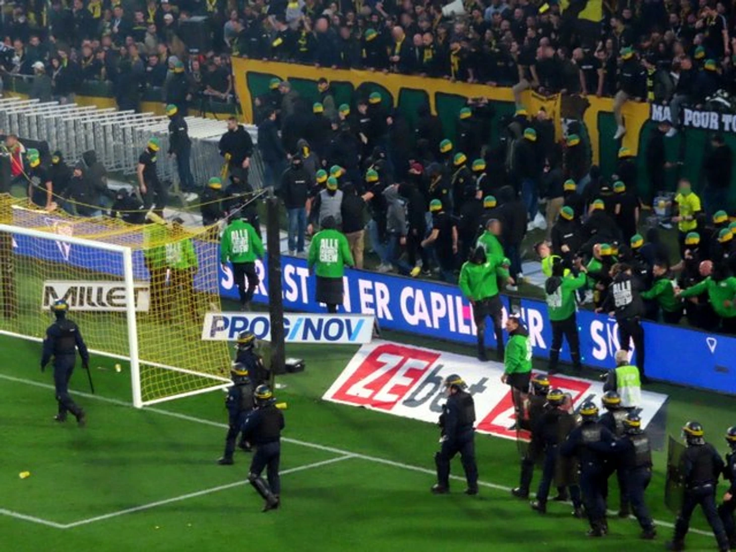 Жаль, что футболисты не смогли порадовать фанатов и преподнести им свой подарок на юбилей – «Страсбург» выиграл на чужом поле со счётом 3:1, из-за чего «Нант» опустился в зону вылета. Несколько десятков разгневанных фэнов в масках пытались прорваться на поле, чтобы высказать игрокам своё недовольство, но путь им преградили стюарды и полицейские. Результаты у клуба и впрямь удручающие: после возобновления сезона «Нант» набрал лишь 7 очков в 9 матчах.