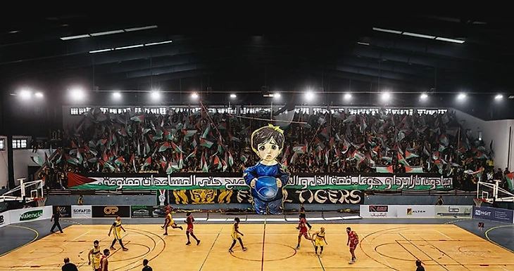 Сегодня мы поступим также, как поступили с крутыми фанатами из 8-й немецкой лиги, а именно возьмём в обзор матч, который календарно не попадает в прошлую неделю, но который мы никак не можем обойти вниманием, тем более в комментариях читатели просят рассказывать о максимально непопсовых вещах. Поэтому давайте отправимся в Марокко, но не на футбол, а на баскетбол! В местном чемпионате встречались команды «МАС» из города Фес и «АСА» из Аль-Хосеймы. А поводом для этого стало шоу, которое устроили фанаты хозяев из группировки «Fez Tigers». Для начала они развернули перфоманс в поддержку Палестины и в очередной раз напомнили миру, что в Секторе Газа в первую очередь гибнут ни в чём неповинные дети.
