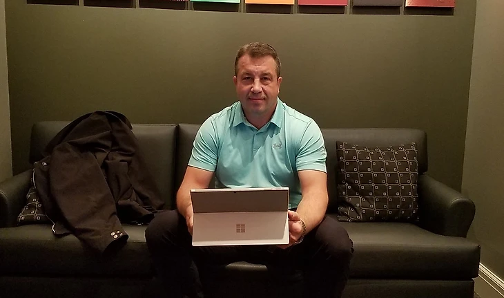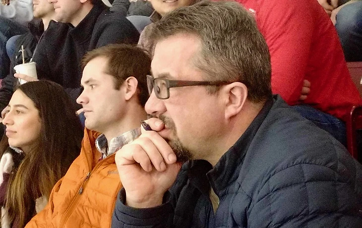 У него крепкое рукопожатие. Взгляд строгий и уверенный. Его вид создает впечатление, что каждый твой жест, каждое слово имеют особое значение. 53-летний специалист серьезно подходит к своему делу – будь то поездка на матч школьной команды в Массачусетс или перелет в Швецию, где ему предстоит посетить игру местного чемпионата. И он точно знает, зачем приехал.