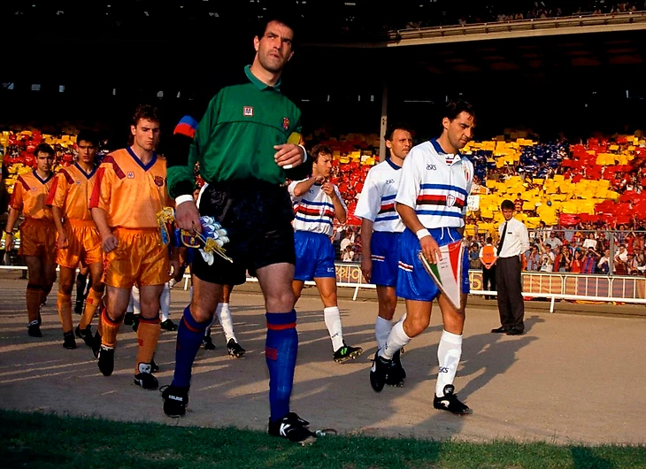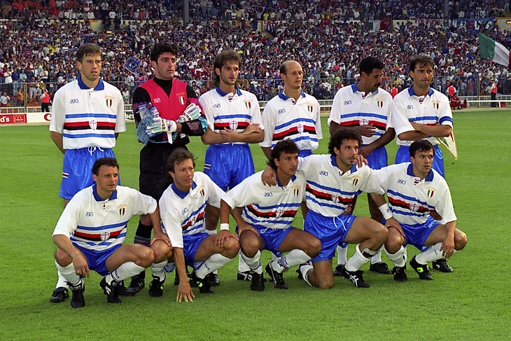 Как «Сампдория» вообще оказалась в Кубке чемпионов? Все просто: Вуядин Бошков привел команду к победе в Серии А-1990/91 и собрал потрясающий состав – Джанлука Пальюка, Сречко Катанец, Пьетро Верховод, Аттилио Ломбардо, Роберто Манчини, Джанлука Виалли. Мощь!