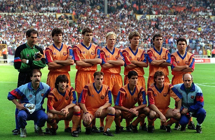 Слева направо верхний ряд Андони Субисаррета, Нандо(Фернандо Муньос), Хулио Салинас, Рональд Куман, Микаэль Лаудруп, Христо Стоичков, Эусебио Сакристан; нижний ряд массажист,