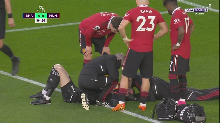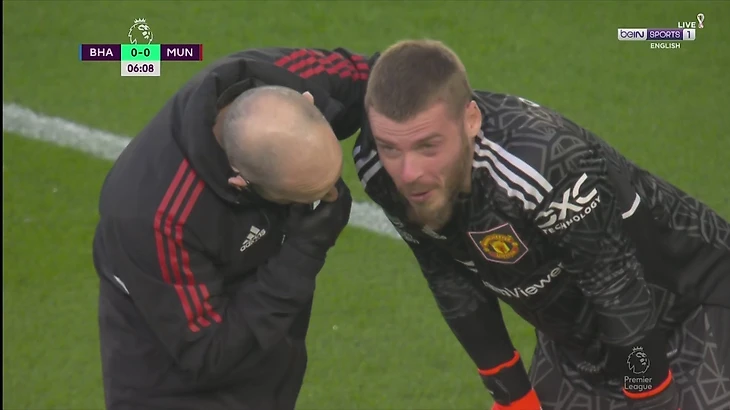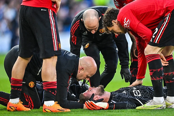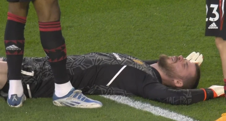 После удара Де Хеа повалился на газон, напугав одноклубников, соперников и всех зрителей матча.