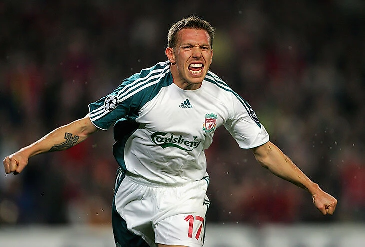 Зато в 2006-м «Ливерпуль» вернулся к adidas. И сразу же отличный бело-зеленый комплект. В нем Крэйг Беллами хоронил «Барселону» на «Камп Ноу».