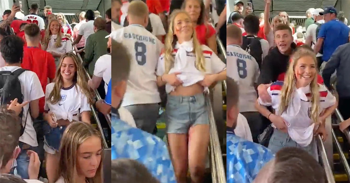 В сети появилось видео с «английской фанаткой в Катаре», которая показывает грудь болельщикам. Мы посмотрели – видео оказалось с Евро-2020