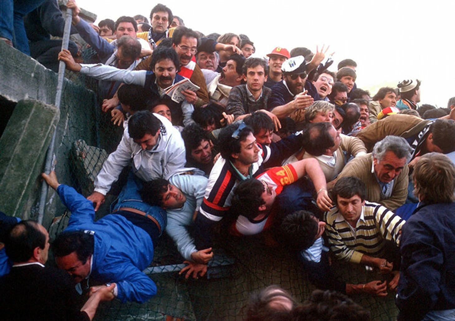 Спустя две недели после пожара в Брэдфорде случилась еще одна трагедия: в Брюсселе перед началом финала Кубка европейских чемпионов между «Ливерпулем» и «Ювентусом» обрушилась трибуна стадиона «Эйзель», погибли 39 человек. Виновными были признаны хулиганы из Ливерпуля, атаковавшие итальянцев. Болельщики «Ювентуса», пытаясь спастись, хотели перелезть через стену старого стадиона. Стена не выдержала и рухнула, начался хаос и давка.
