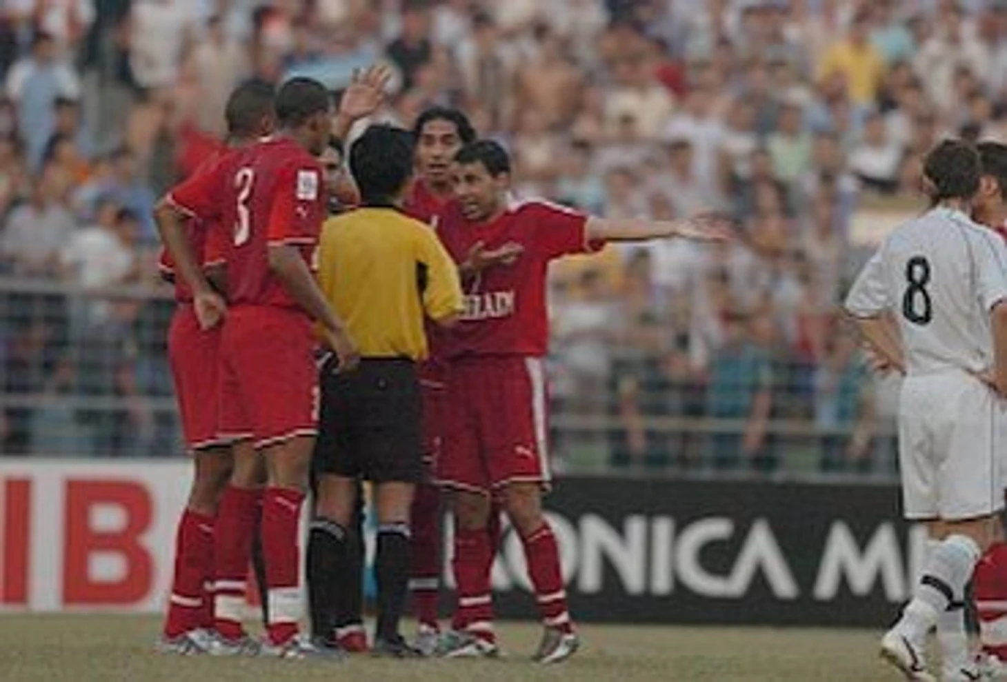 Что стало причиной скандала? На 38-минуте матча сборная Узбекистана провела контратаку, после которой Али Хусейн ошибся на выходе из ворот и не смог поймать мяч. Забежавший с левого фланга Максим Шацких ударил головой по пустым воротам, но защитник соперника Мухаммед Джума в прыжке отбил мяч рукой. Японский арбитр Тосимицу Ёсида назначил пенальти. Хотя формально, он имел право еще, и удалить Джуму за «фол последней надежды». Пенальти реализовал Сервер Джепаров, но в момент празднования гола арбитр неожиданно поднял руку вверх, встав на линию штрафной площади. В тоже время, ассистент главного арбитра стоял с поднятым флажком вверх, что означало назначение свободного удара. Игроки сборной Узбекистана бросились к арбитру, но японец был непреклонен. В тоже время, футболисты Бахрейнца активно жестикулировали японскому судье, оказывая на него давление. В результате всей суматохи Али Хусейн быстро ввел мяч в игру, дав старт началу матча. После остановки игры последовал телевизионный повтор момента с забитым пенальти. Он показал, что нарушением в этом эпизоде могло быть только то, что футболист сборной Узбекистана вошёл в штрафную площадку до нанесения удара по воротам. В таком случае следовало перебить пенальти заново. Других нарушений в этом эпизоде не было.