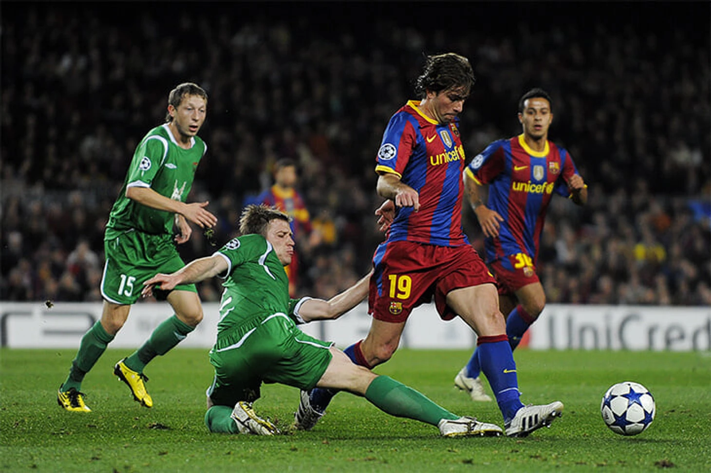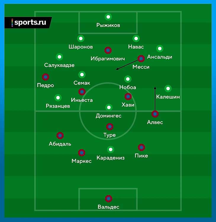 Матчи следующего сезона сильно отличались. 1:1 в Казани были обманчивыми – «Барса» с Месси в любимой роли создала 5 явных моментов и могла громить «Рубин». В ответной игре на «Камп Ноу» Гвардиола выпустил дублеров – ложную девятку исполнил 19-летний Тиаго Алькантара, а в центре полузащиты играл Максвелл. Даже этот состав «Барсы» доминировал – и уверенно выиграл 2:0.
