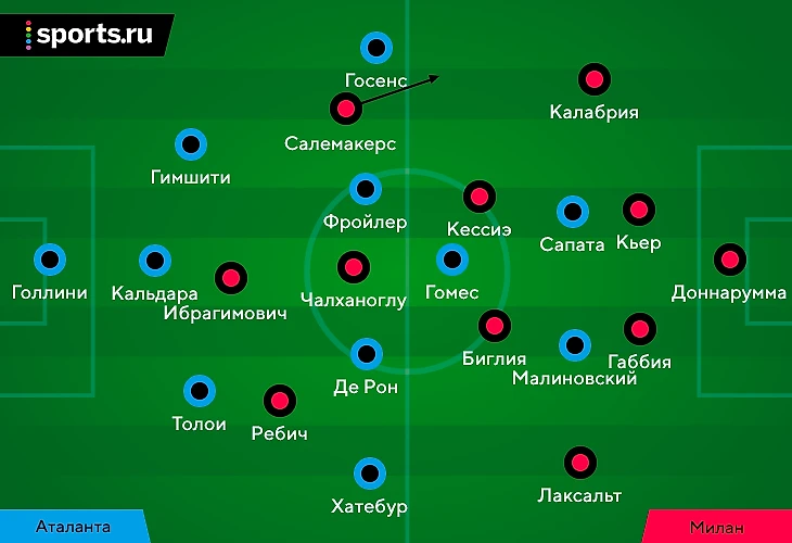 В таком ходе был смысл. В типичной схеме персонального прессинга с Калабрией играл Госенс, но позиция Калабрии оказывалась слишком глубокой, идти так высоко было рискованно для латераля. Но «Аталанта» адаптировалась – с Калабрией просто стал играть Папу Гомес, опорники выдвигались выше: