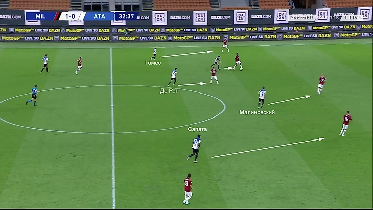 Эту сильную сторону «Милан» нейтрализовать не сумел. Но из-за хорошей игры в остальных аспектах эпизодов с контрпрессингом было меньше, чем в типичном матче «Аталанты».