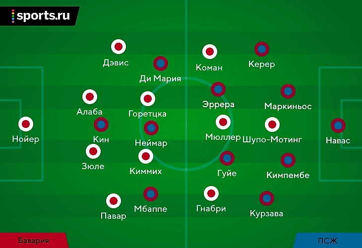 • Что непонятно, так это левый фланг. Вроде Дэвис изначально стартовый. Но он был одним из самых слабых звеньев того финала с ПСЖ, где Ди Мария вовсе так поиздевался над ним. То к какому виду располагает матч для Баварии (более оборонительный, надежный и компактный), наталкивает на мысль, что Лукас Эрнандес более логично вписывается в такую формацию. А в матче с Лейпцигом он вовсе был лучшим в оборонительных построениях. В общем, знатно зарекомендовал себя он Флику.