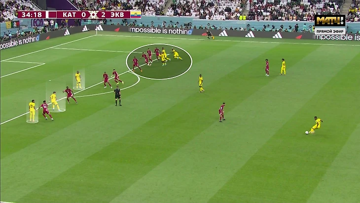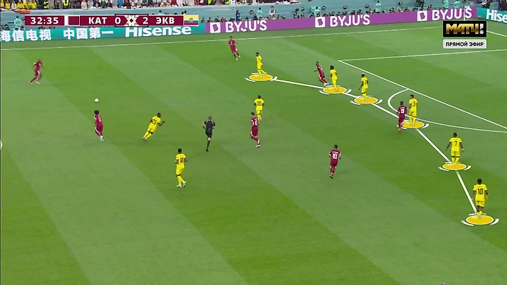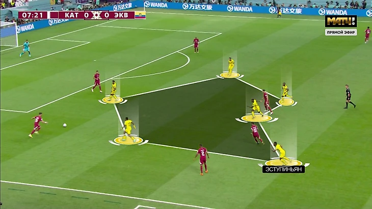 Грубо говоря, вот типичный для Эквадора эпизод в стартовые минуты – шесть игроков, включая высоко выдвинувшегося левого защитника Первиса Эступиньяна, компактно зажимают соперника на его трети: