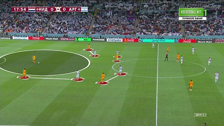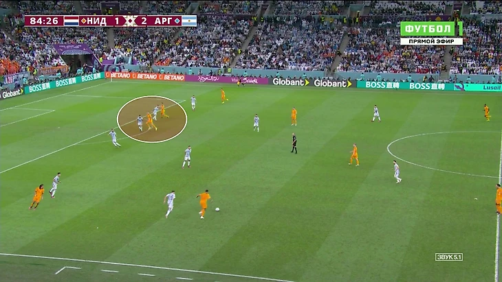 Голландцы сдерживали Месси через передачу между игроками и персональное доигрывание до конца. Как правило, задача ложилась на тройку игроков – Натана Аке, Френки де Йонга и Мартена де Рона. Они передавали Лео. Тот, кто оказывался с ним, плотно доигрывал до конца эпизода или до безопасного момента, когда можно передать.