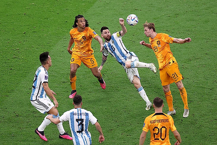 Из-за адаптаций Скалони и ЛВГ Месси оказался в непривычных условиях. Во-первых, реже обычного получает мяч (вся команда им меньше владеет). Во-вторых, Нидерланды уделили отдельное внимание передаче Лео и организации плана по плотной (почти персональной) игре против него. Волшебство Месси в таких условиях должно получать даже больше комплиментов, чем обычно.