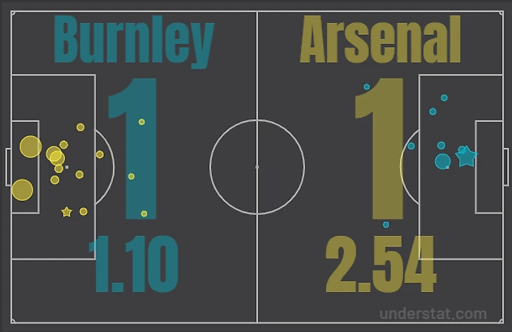 Хозяева поля не стремились сушить игру и оставить ничейный результат. Да, так могло показаться, но для Бернли, который играет в крайне оборонительный футбол от соперника, этот матч — большая смелость. Владение мячом в 41%, против контролирующего игру (не берем матчи против Сити и Ливерпуля) Арсенала.