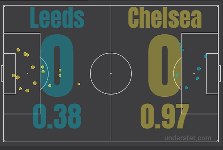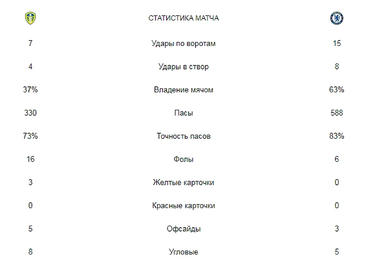 Лидс практически сразу решил ловить Челси на ошибках, посему никакого контроля, как по отсутствию желания, так и по отсутствию такой возможности (стоит ли пытаться конкурировать с Челси во владении?) подопечные Бьелсы даже не пытались навязывать.