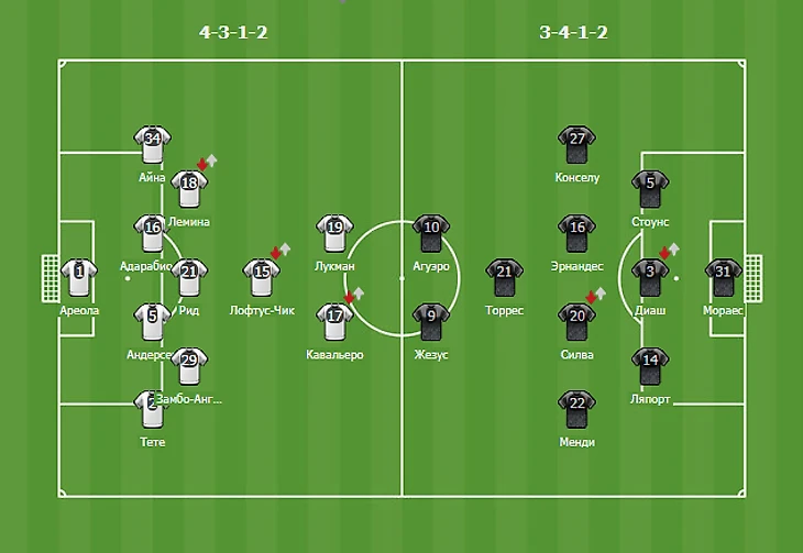 Гвардиола, скорее всего, из-за плотного игрового календаря, вновь ударился в эксперименты, сыграв с тремя защитниками и двумя нападающими, чего до этого матча видеть нам практически не приходилось.