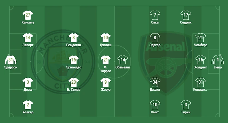 Гвардиола изначально подобрал победоносную модель игры, которая поставила подопечных Артеты в тупик. Схема была достаточно привычной: 433, которая при обороне трансформировалась в 4231, а при атаке - в 334. Стоит отметить, что Пеп малость рискнул, выпустив Бернарду и оставив греть банку Стерлинга. Габи Жезус номинально играл справа, но часто исполнял роль ложной девятки.