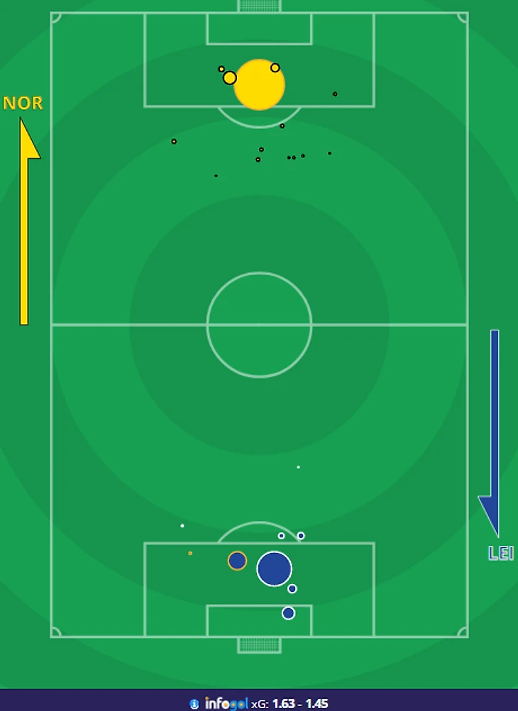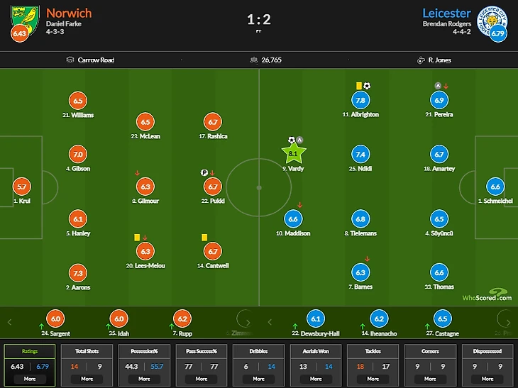 Норвич вновь показывает абсолютно непонятную игру, но уже более качественно. Команда Фарке в первом пропущенном полноценно придумала себе проблему самостоятельно, за что была наказана Варди, который, к слову, сделает голевую передачу и во втором голе его команды.