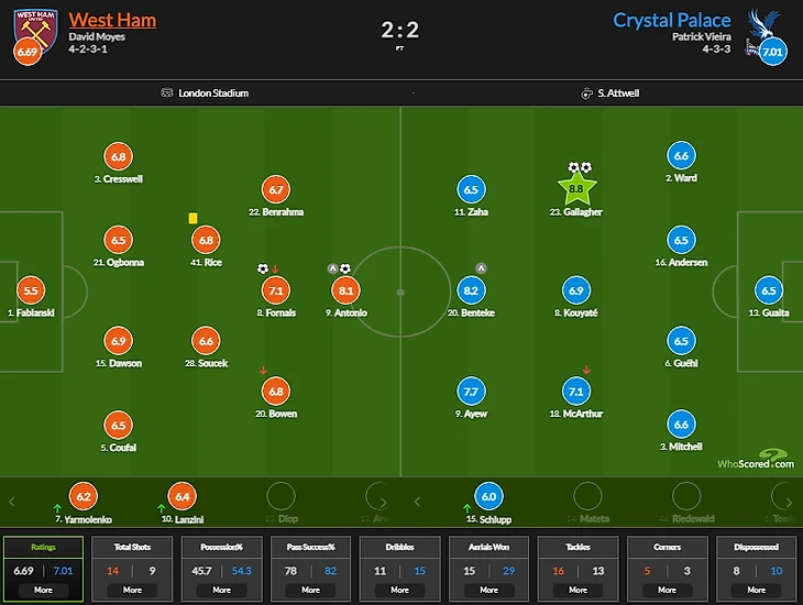 Кристал Пэлас показал первый вразумительный футбол в этом сезоне, но над стабильностью - работать и работать, поскольку в первом тайме "молотобойцы" могли закрыть матч. Галлахер выдал отличную футбол, став МВП весьма заслуженно.