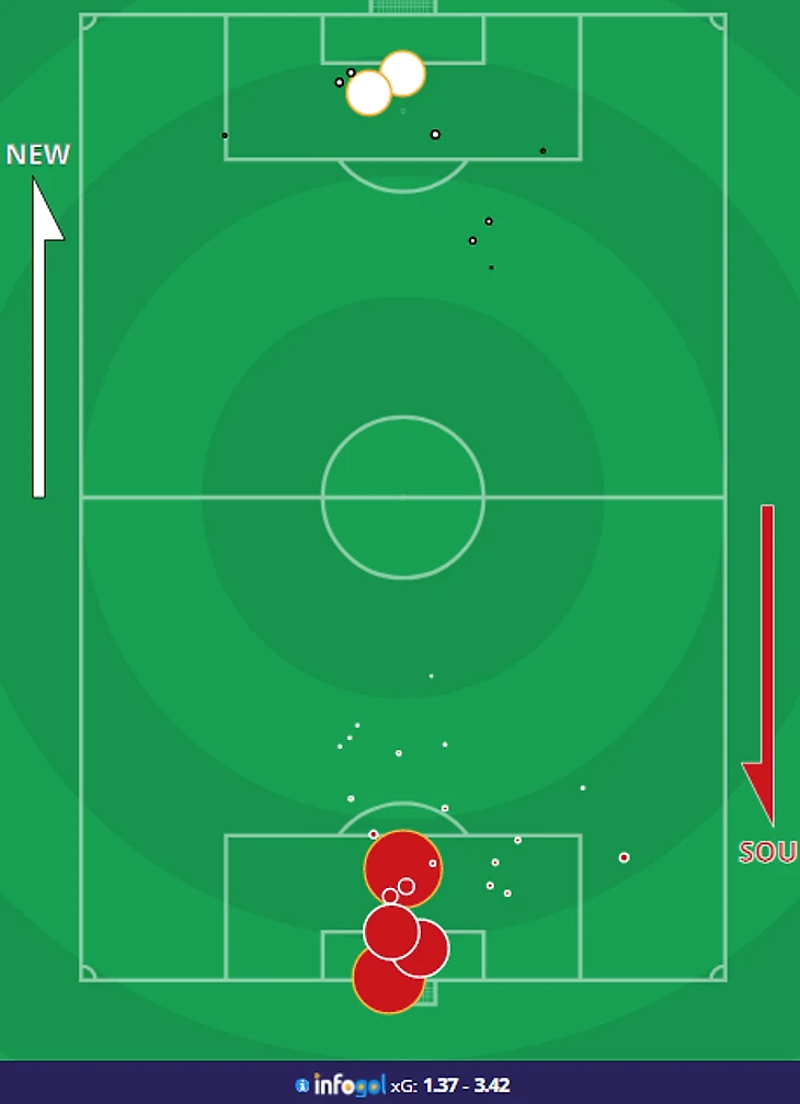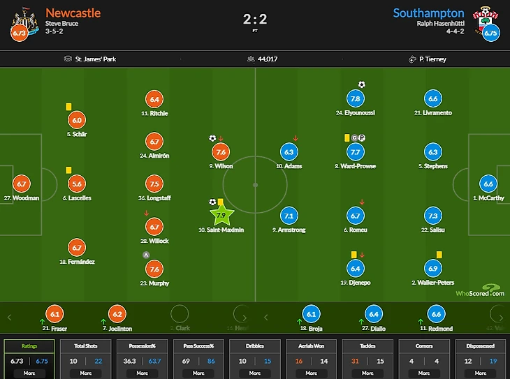 У Ньюкасла все ровно наоборот: создавали немного, но вполне осознанно и вдумчиво. Пара Максимен-Уилсон, в которой первый играл в оттяжке, а второй пытался держать позицию "девятки", отлично выбегала в контратаки, напрягая тем "святых".
