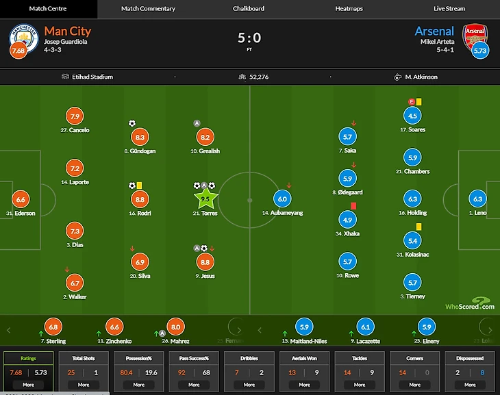 На этом этапе стоит прекратить: удаление Джаки развязало руки команде Пепа, которая оставшиеся 55 минут просто кайфовала от игры, комбинируя, атакуя, разыгрывая и забивая. Гвардиола пока что справляется без нападающего на ура, но будет ли все это работать на дистанции - посмотрим.
