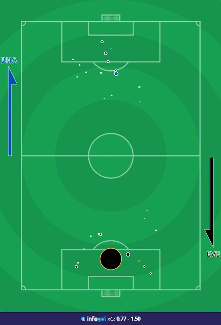 Несмотря на то, что первый тайм больше заслуживал ничейного результата, Грей на индивидуальном мастерстве вывел Эвертон вперед: Демарай прорвался с мячом по левому флангу, а Гросс и Лаллана зазевались при атаке, не успев вернуться. Грей сильным ударом по земле прошил Санчеса, который хоть и выбрал удачную позицию, но спасти счет не удалось.