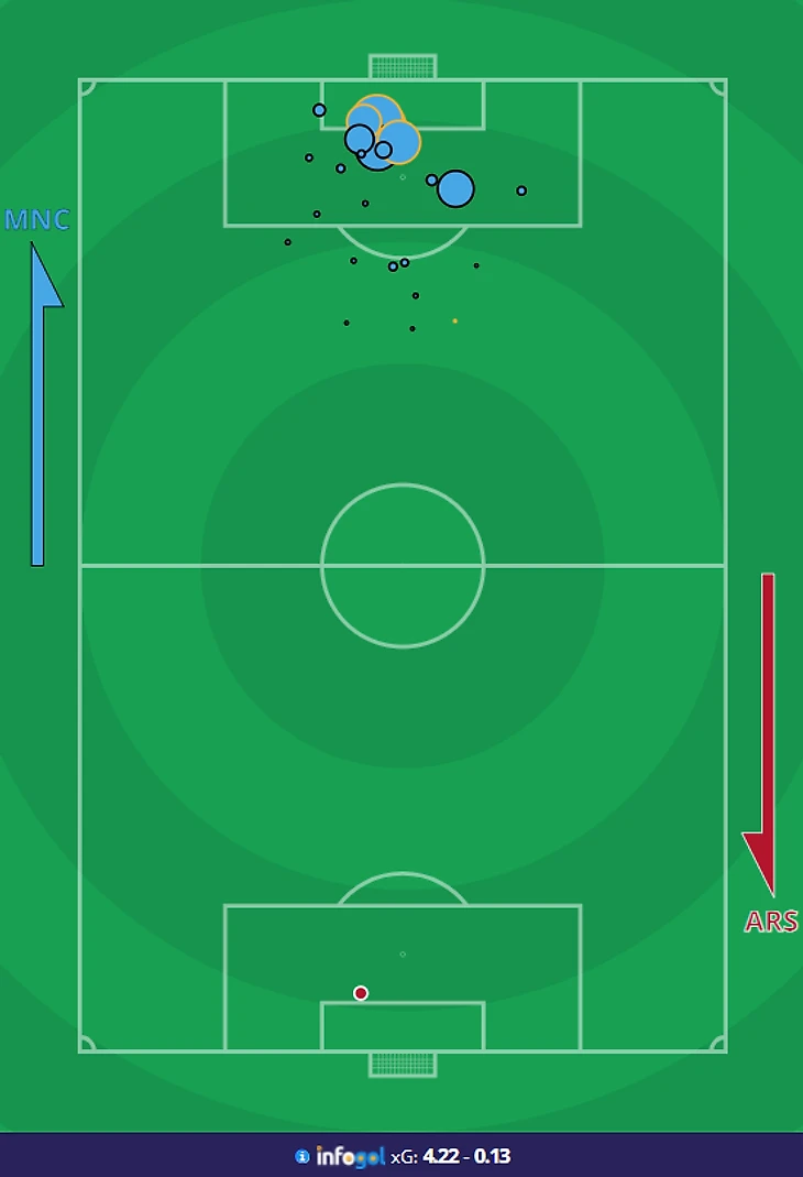 МС мгновенно почуяли кровь, немного усилив давление на соперника, но даже это смотрелось весьма вяло. Гвардиола четко придерживался своего замысла, пока его команда наверняка не обеспечила себе победу. Горожане не шли в отборы близ штрафной Лено, а делали акцент на мид-прессинг, в котором Арсенал явно был слабее.
