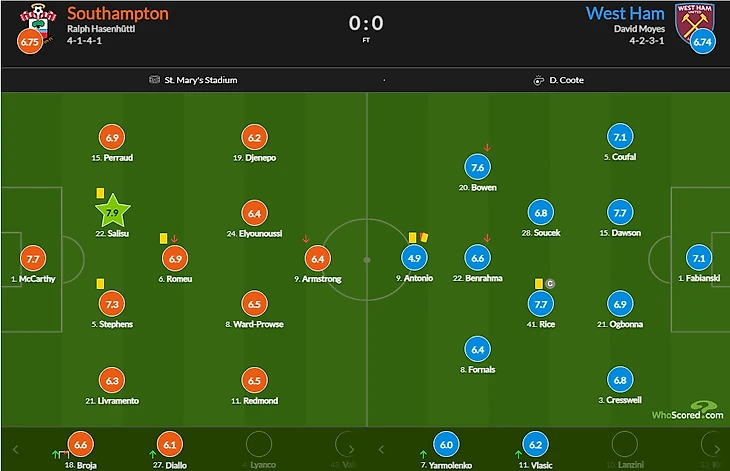 По паре острых моментов на каждую команду точно найти можно (штанга Броя; стандарты Вест Хэма), но реализация подвела даже лучшего игрока августа Антонио. Майкл настолько был недоволен потерей очков своего клуба, что решил под завесу игры заработать ненужную вторую желтую. Кто его заменит в воскресной игре против МЮ — загадка. В матче против "дьяволов" потеря Антонио может быть весьма болезненной, да и кого, собственно, выпускать вместо Майкла? Ямаец является единственный профильным центрфорвардом в клубе, а ставить на такую позицию Ярмоленко, Боувена или Бенрахма — риски, которые могут не то, что не оправдаться, но и излишне навредить. Мойесу предстоит сложный ребус, как, кстати, и Саутгемптону, которого ждет встреча на Этихаде с Гвардиолой.