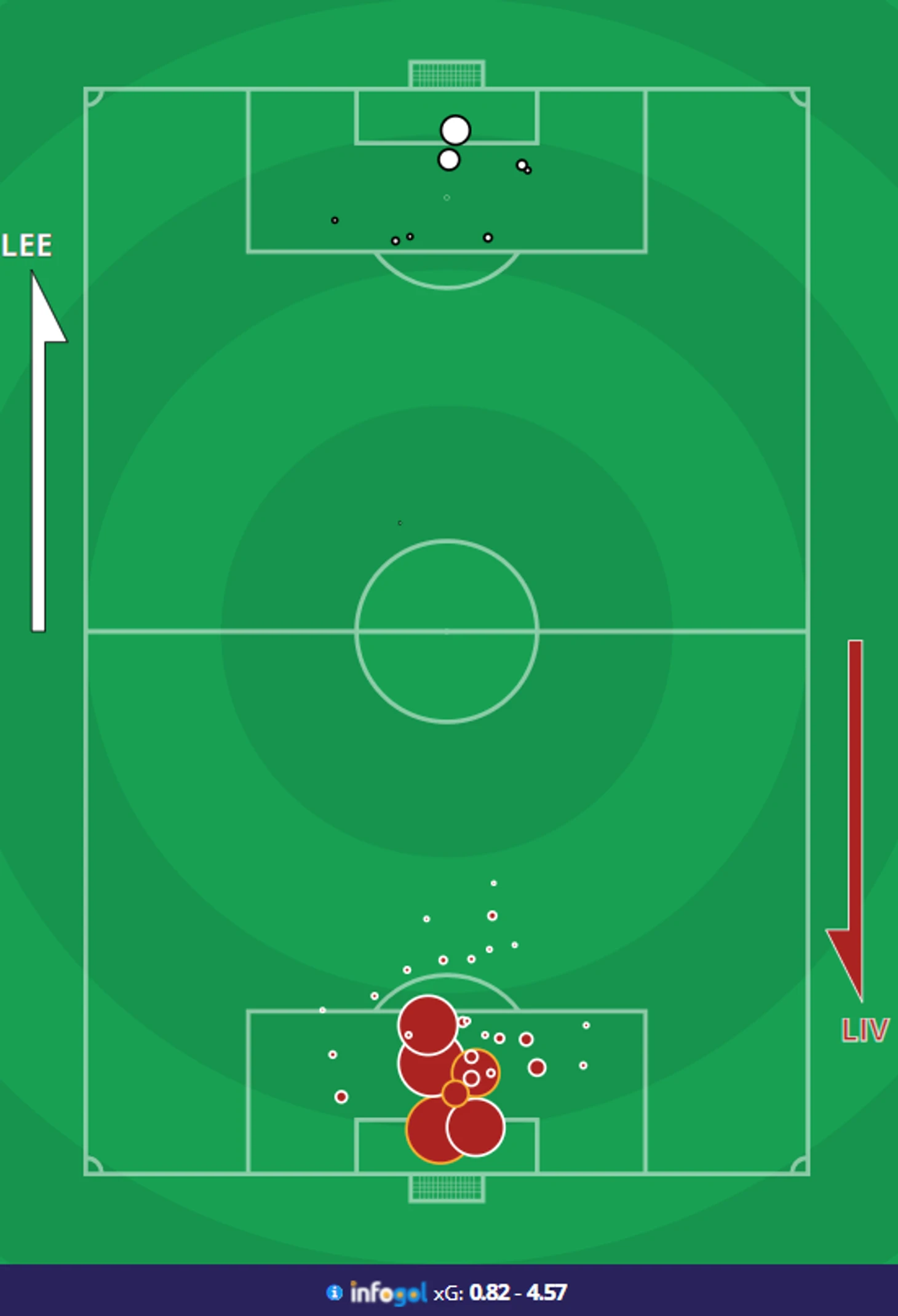 В этом сезоне Ливерпуль выглядит ничем не хуже, чем в чемпионском. Команда Клоппа сметает все на своем пути. Лидс, к сожалению или к счастью, помешать этой уверенной поступи никак не смог. К тому же, подопечные Бьелсы находятся в явном кризисе: помимо разгромных поражений и ничьих, Лидс начал куда хуже созидать, что подтверждено различными метриками, которые отображают проблемы в атаке. Например, Лидс стал значительно хуже доставлять мяч на финальную треть поля, да и на половине соперника тоже проводит куда меньше времени, чем в прошлом сезоне.