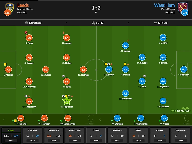 Мойес в этом матче был близок в потере очков (Лидс имел пару убойных моментов, среди которых штанга от Рафинья), но психологически "молотобойцы" настолько мощны, что даже выездная ничья будет считаться провалом.