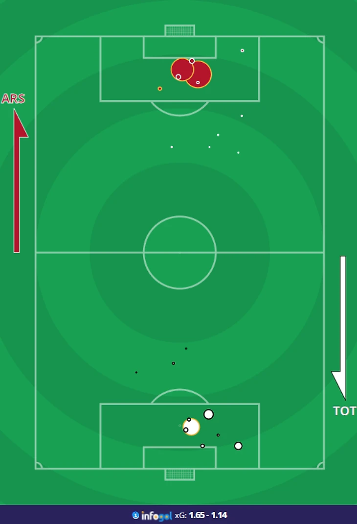 Второй тайм, разумеется, был противоположным: Канониры, имея огромное преимущество, действовали сугубо по счету, а Тоттенхэм пытался хоть что-то придумать в атаке. Да, моменты реально имелись, но назвать их стопроцентными никак нельзя.
