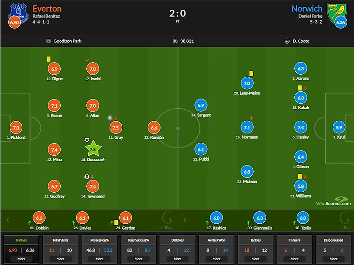 Примечательно, что победу над "канарейками" удалось оформить и без главных хедлайнеров нападения в лице Андраде и Кальверта-Льюина. Бенитес не боится давать шанс проявить себя другим игрокам.