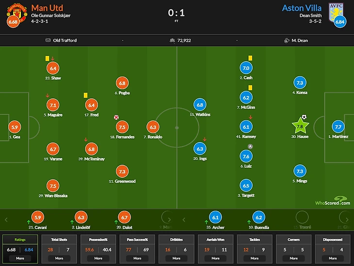 Костяк команды, а именно Бруно, Погба, Роналду и Гринвуд, выглядел совсем уж посредственно. Количество брака, предполагаю, перещеголяло все предыдущие матчи сезона, а скорость болталась от медленной до средней.