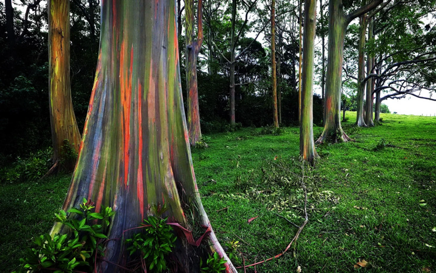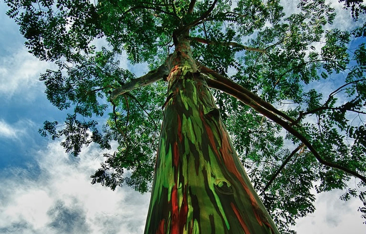 Другое интересное дерево – радужный эвкалипт. Этот эвкалипт удивителен тем, что его ствол как будто покрыт разноцветными красками, при этом раскраска всё время меняется... кажется, будто здесь «поработал» художник.