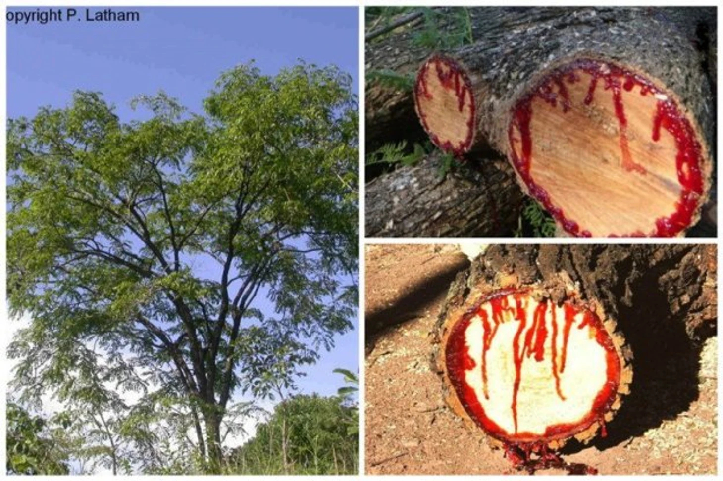 А вот еще одно – Кровавое дерево (Pterocarpus angolensis). Это необычное тиковое дерево растет Южной и Восточной части Африки.