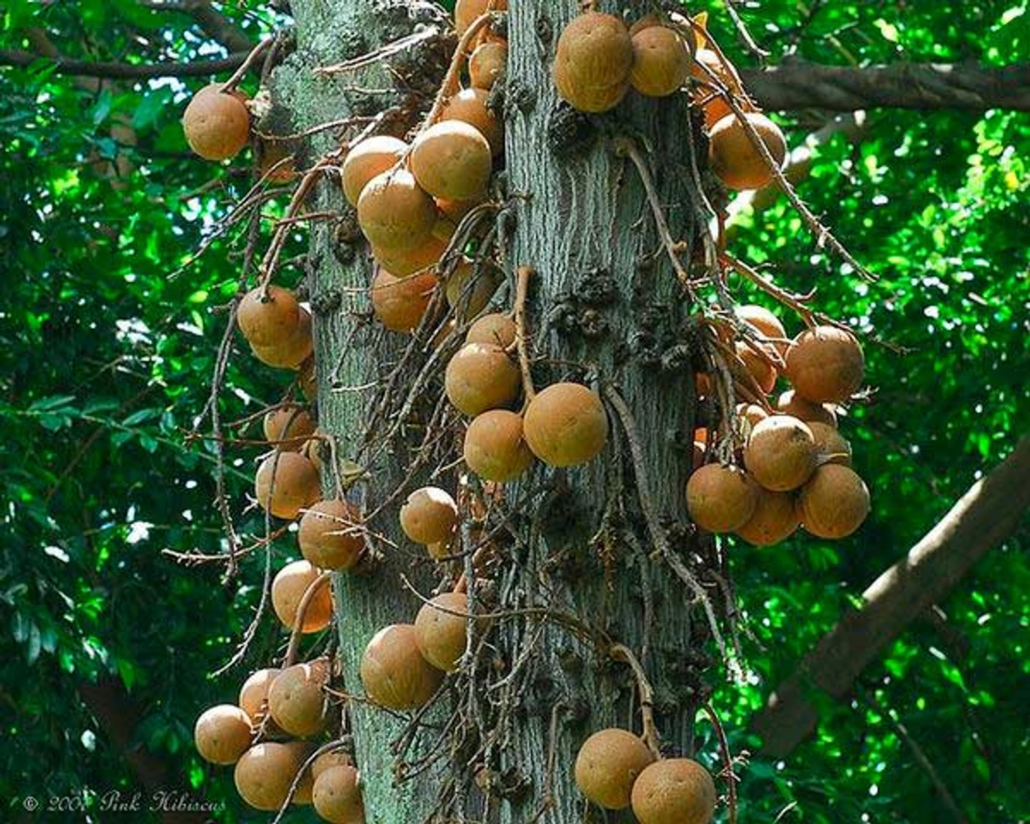 Дело в том, что на стволе этого необычного дерева растут огромные плоды в форме пушечных ядер. Одно пушечное дерево может принести целых 200-300 плодов диаметром до 30 сантиметров.