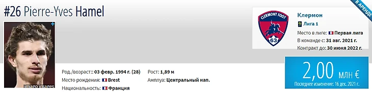 Уроженец Бреста, что, как вы знаете, расположен во Франции, Пьер, или Ив, или Пьер-Ив ребёнком поиграл за "Лесневен" и "Ландено", а в 15 лет оказался в "Ренне". Пройдя всю академию "ле руж эт нуар" вплоть до дубля, в 2015 году Амель перешёл в небольшой клуб "Авранш". Этот клуб тогда играл в Третьем дивизионе Франции, и Пьер-Ив, что необычно, не сразу туда вписался, проведя на поле 3 матча и никак себя не показав. Ещё любопытнее то, что после невразумительного периода в "Авранше" молодого француза подписывает... "Лорьян", да тот самый, что играет в Лиге 1. Заметим, что Амель возрадовался и за 33 минуты, сыгранные в общей сложности в том сезоне за основу "Лорьяна", смог забить целый мяч в ворота целого "Нанта". "Лорьян" вылетел, а Пьер-Ив Амель, наоборот, поднялся - поднялся он в основной состав, став регулярно выходить на газон "Стад дю Мустуар" и других стадионов. И, видимо, не зря выходил: тут вам 10 матчей и ассист в 29 турах Лиги 2 вкупе с 4 голами в 3 матчах Кубка Франции (хет-трик клубу "Стелла-Мари") - растёт настоящий 23-летний бомбардир. "Лорьян" не вылетел, но и не поднялся, а Амель, как на зло всем хейтерам, продолжал разрывать: ДЕВЯТНАДЦАТЬ (19!!!) голов в 37 играх Лиги 2 сезона 18/19 при трёх ассистах - невероятно мощные цифры! Разумеется, такой результат стал возможен благодаря, конечно же, самому Амелю и его фантастически крутым партнёрам - Клод-Морис и Кабо, Лемуан и Ле Гофф. Но какой же красавец Амель... Был. "Лорьяну" не хватило нескольких баллов, чтобы подняться в элиту, поэтому новый сезон и для "Лорьяна", и для Пьера-Ива начался в Лиге 2. Кардинально обновившаяся атака "Лорьяна", из старой обоймы которой остались лишь Амель и Кабо, постепенно перешла в кризисное состояние. Это видно по цифрам француза за два сезона: в сезоне 19/20 при 26 играх - всего 9 голов, а в чемпионате 20/21 - грустные 4 мяча за 23 матча. Медленно стагнировавший Амель показался "Лорьяну" не нужным (им он нужен только в прайме), а вот "Клермону" подойдёт и такой - так, летом 2021 года Пьер-Ив Амель оказался в Клермон-Ферране в аренде на весь сезон. Мне кажется, что хуже "Авранша" для Амеля нет ничего, но я ошибался: худшую версию себя Пьер-Ив показал в "Клермоне" - за 16 матчей не было совершено ни одного результативного действия (хотя чистого времени сыграно на 5 матчей всего). Невероятно громоздкий и медленный, проигрывавший абсолютно всё и всем, отдающий уникальные по своей неточности пасы - таким предстал Пьер-Ив Амель, в прошлом - качественный бомбардир, неискушённой клермонской публике. Это главное разочарование в трансферном плане для "Клермона" в сезоне 20/21 - я искренне надеюсь, что руководство "Клермона" выплатит Амелю всю оставшуюся до июня зарплаты и прекратит с ним арендное сотрудничество, ибо Пьер-Ив Амель способен играть, судя по всему, исключительно за "мерлузовых".