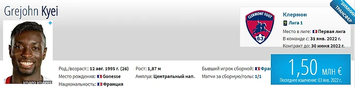 Грэжон Кеи - самый-самый свежий игрок в команде, прибывший вместе с Лукасом Да Куньей в "Клермон" этой зимой, отличается габаритами и лучезарной улыбкой, по происхождению - ганец.