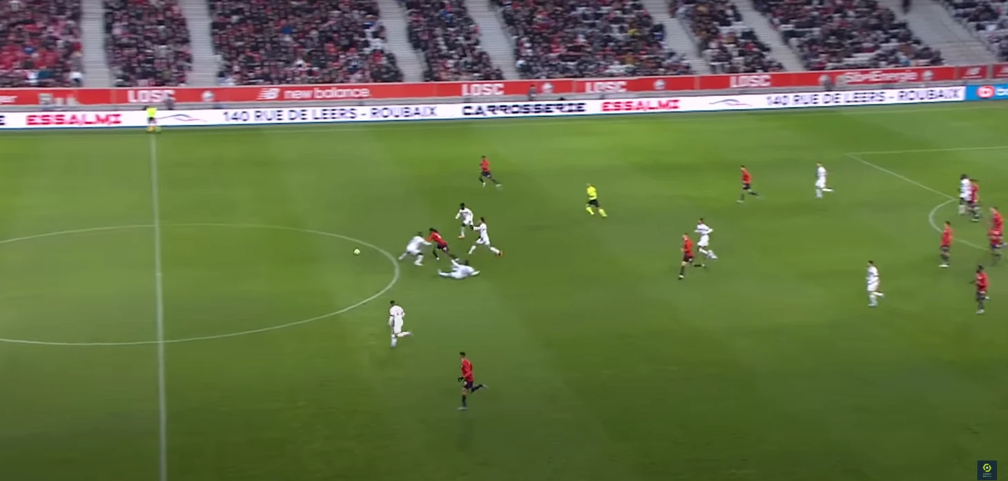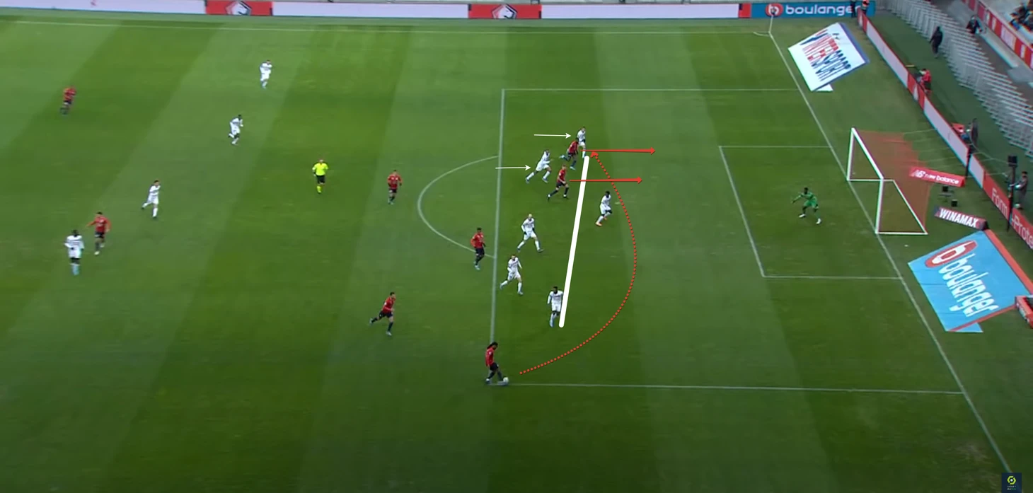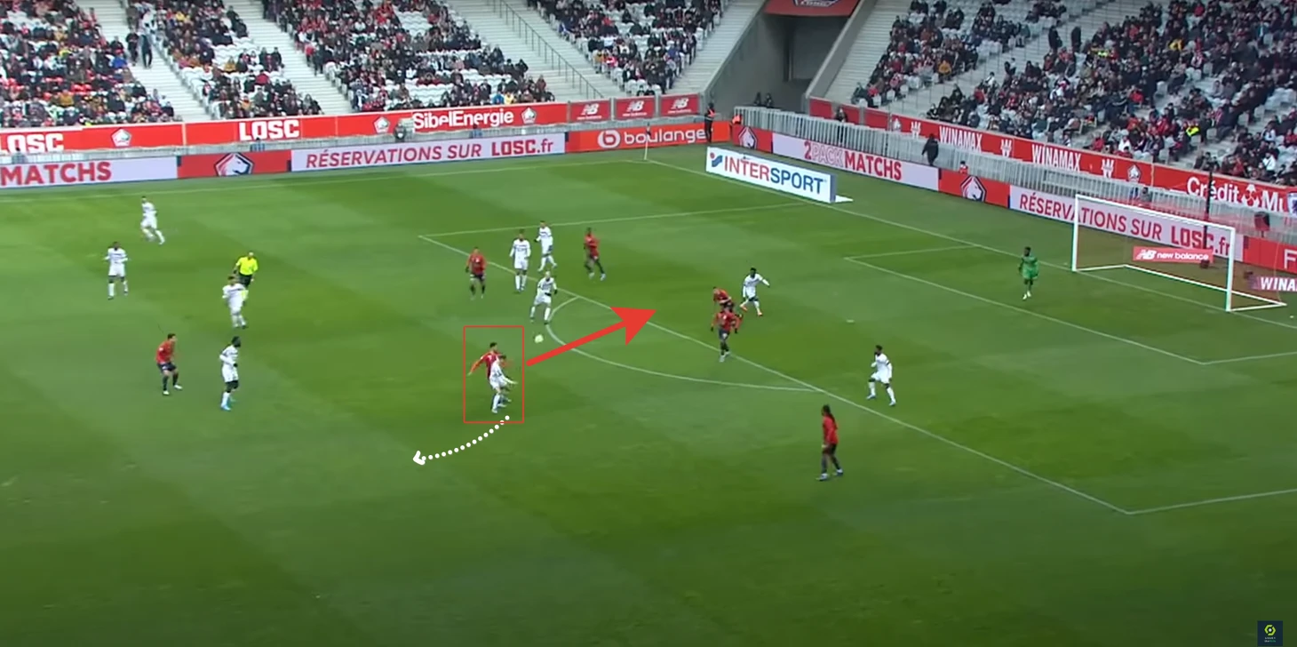 Заметьте также, что остальные защитники, в частности Унтонджи, не успевает за своим оппонентом, а Зедадка, равно как и Сейду в ситуации 2 в 1, априори проиграет. Осознавая это, Зедадка даже не прыгает, а Жонатан Бамба делает счёт 1:0 в пользу "Лилля".