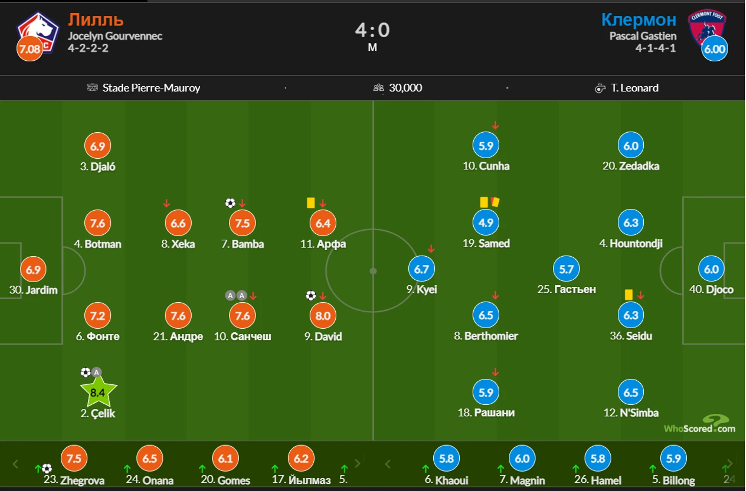 По итогу "Клермон" остался в меньшинстве на 68 минуте, а уже на 71-ой пропустил второй мяч. К этому моменту "Клермон" перестроился на игру в три центральных, однако "Лиллю" это не помешало начать забивать.