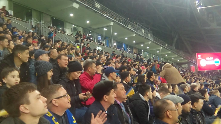 Казахские зрители поражению не огорчились, хотя часть людей начали уходить уже после 0:3, а уж после автогола свободных мест становилось критически много. Опять же признак совсем нефутбольной державы. Остались люди разного возраста с плакатами, на которых содержались просьбы подарить майку или дать автограф, адресованные исключительно российским игрокам. Не ленились писать послания прежде всего Дзюбе, Черышеву и Смолову. И только две девочки на моем секторе сиротливо держали ватман с обращением к Бактийору Зайнутдинову, который зимой перешел из «Астаны» в «Ростов», и забил один из голов своей сборной шотландцам.