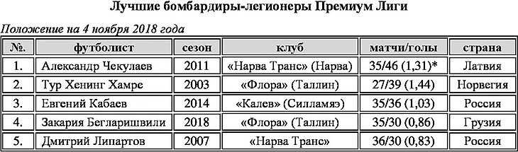 Отметившись хет-триком в воротах «Тулевика», в выездном матче 35- тура Премиум Лиги, Закария Бегларишвили принёс своей «Флоре» уверенную победу со счётом 3:1, но кроме этого грузинский полузащитник довёл счёт своих голов в чемпионате до 30 забитых мячей.